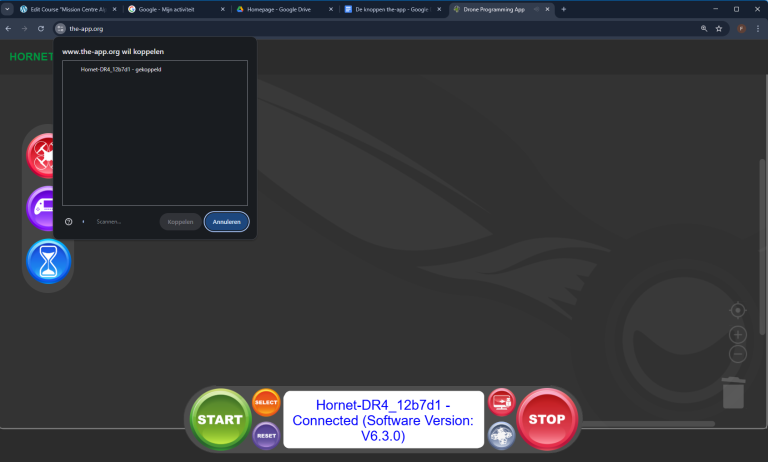 We gaan nu de Hornet-drone verbinden met de software.
