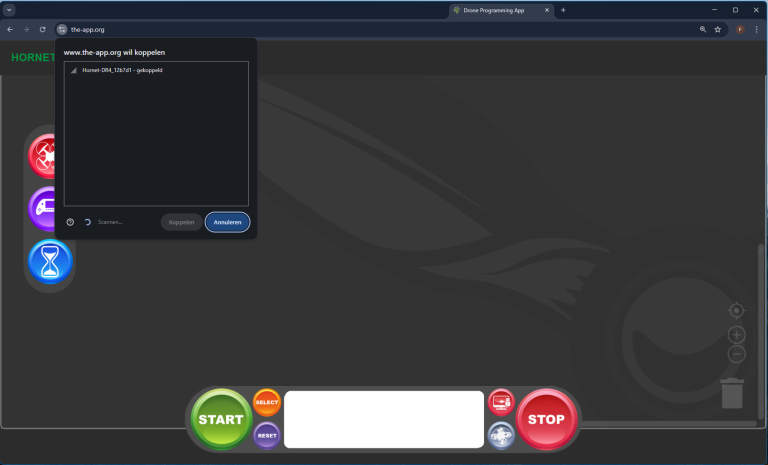 Elke drone heeft een unieke naam, maar alle beginnen met “Hornet-DR4”.Selecteer de juiste naam en klik op Koppelen.